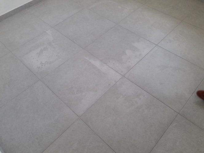 יש לי דירה חדשה, עם ריצוף גרניט פורצלן אפור בהיר עם דוגמת שיש עדינה (דגם אגורה בלנקו). לאחר נקיון מקצועי של הדירה (עם קלינר 5000 פלוס) התגלו כתמים בהירים בריצוף בהרבה מקומות בבית. הקבלן טוען שבמסירה הדירה הייתה אחרי נקיון ולא ראינו את זה אז לכן זה משהו שהחברת נקיון גרמה. החברת נקיון עשתה נקיון בהרבה דירות בבניין, ובשום דירה זה לא קרה, והם טוענים שאחרי נקיון מקצועי של כל השכבות שהצטברו הכל מתגלה ולכן לא ראינו את זה לפני הנקיון.