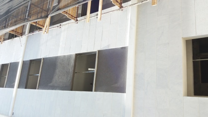 שמתי לב שבבנין החדש בו רכשתי דירה חיפוי הבנין מאבן סיליקט לא חלק. הדבר בולט בזוית של השמש המטילה צל על האריחים.