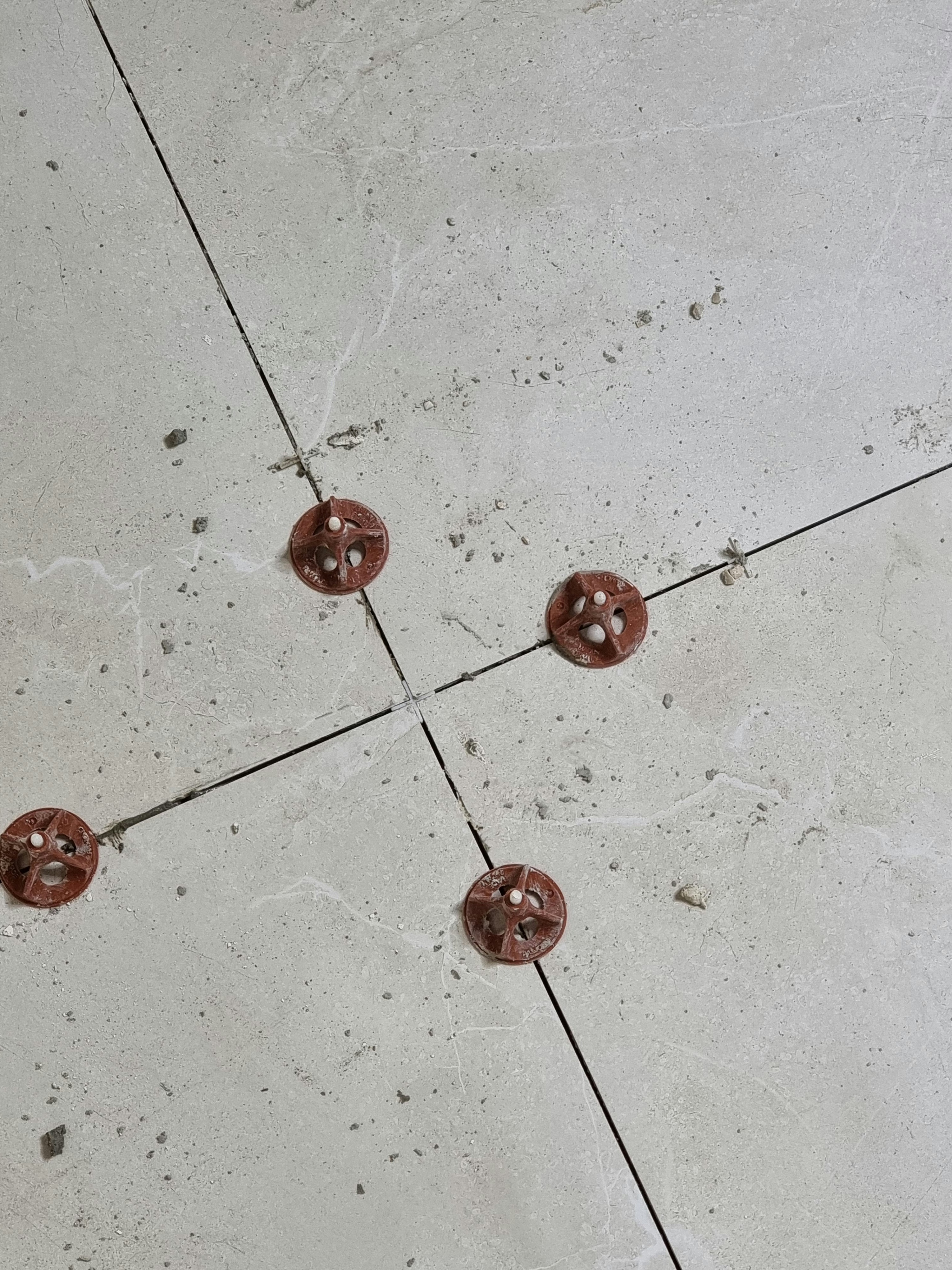 נראים עיגולים בריצוף ונראה שהפלסטיקים בין המרצפות בזמן הריצוף השאירו סימן שלא יורד . צרפתי תמונה . מה עושים . זה לא יורד בניסיון לנקות