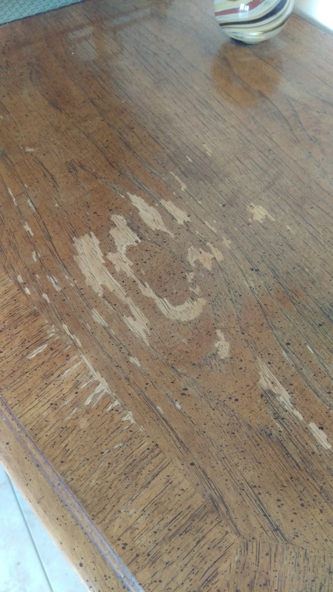 יש לי מזנון מעץ מלא בן כ-45 שנה, ירושה. יש אזור בו שמתקלף כתוצאה מעציץ עם מים שישב עליו, וכן בתחתית משטיפות רצפה.