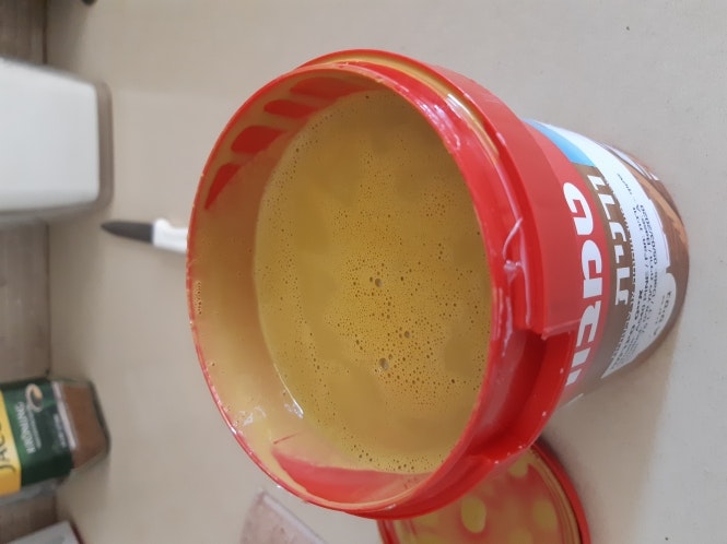 המגירה אמנם צבועה בצבע אפוקסי בגוון שמנת אך עשויה מעץ כלשהו (יש הרבה מאוד סוגים) ולכן צבע פוליאור יכול מאוד להתאים לצביעת המגירה.
