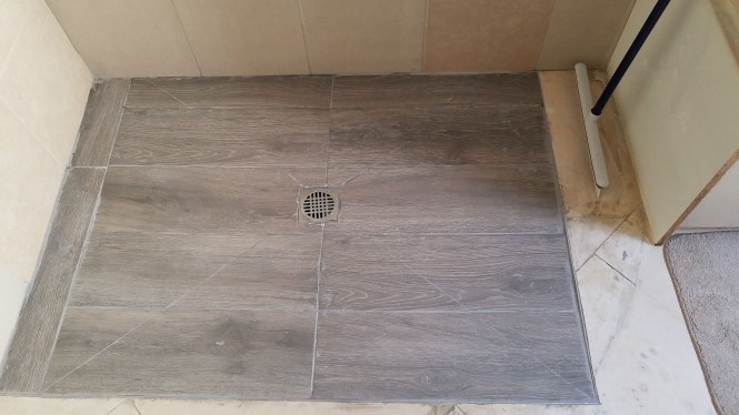 יש שיטות נכונות לרצף דוש עם אריחים דמויי פרקט.
