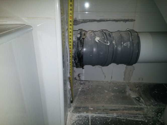 דירה חדשה מקבלן, באחת האסלות בדירה, כל בוקר המים הופכים לעכורים. מבדיקה שנעשתה, ע"י ניקוז המים וסגירת ברז הניל, נמצא שהאסלה מתמלאת כמעט לגובה רגיל בשפכים שמגיעים מהצינור האנכי של הבניין. לאחר פירוק הקרמיקה, גיליתי שכמעט ואין שיפוע (ראו תמונה).