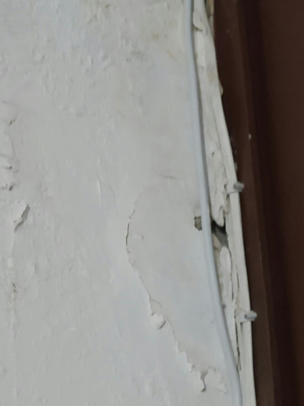 החור מאוד קטן בגודל כפית וגם ליד משקוף ולכן נשבר . ממליץ מילוי והחלקה וביצוע צבע לא ניראה עדות לרטיבות