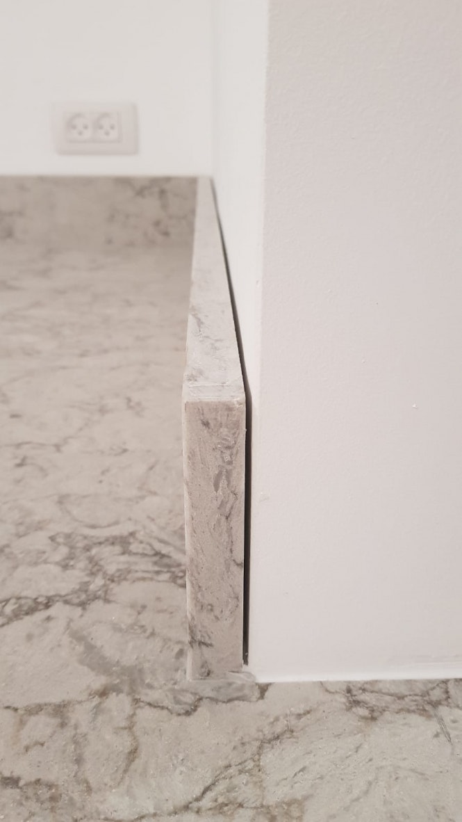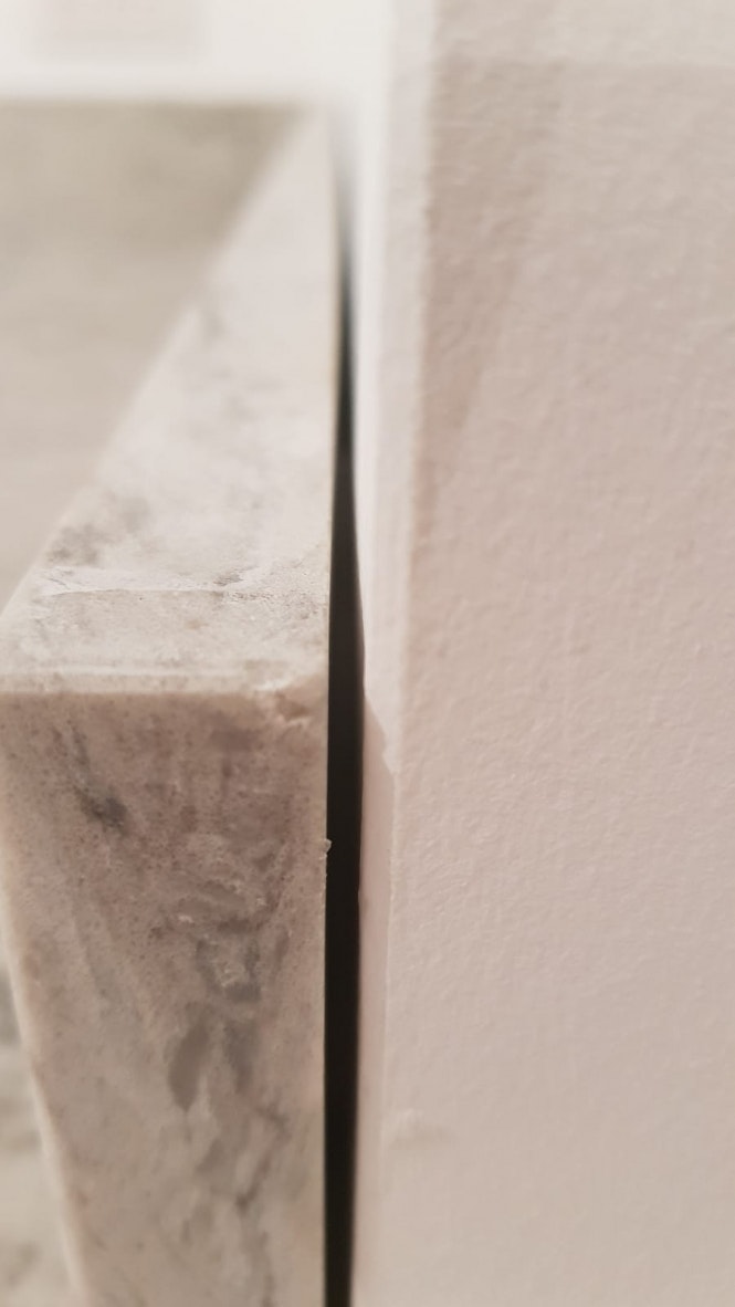 לא מדובר על חיבור בין שיש לחיפוי, אלא בין שיש לקיר. החריצ בן כמה מילימטרים בודדים. ראו תמונה.