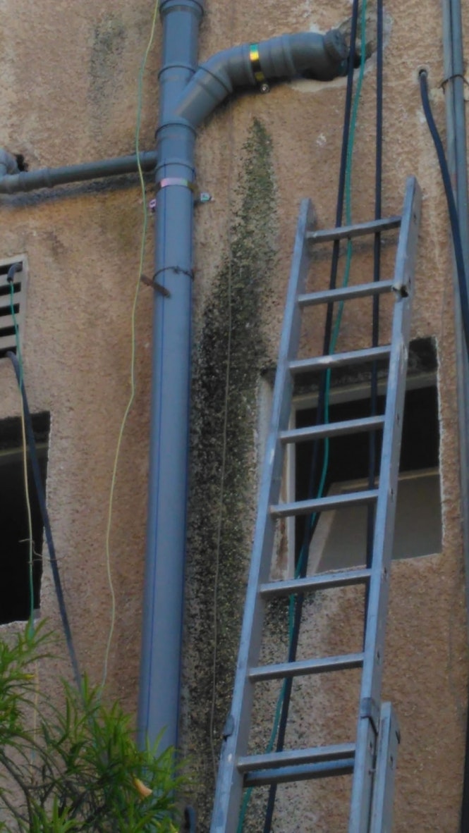 בנין ישן מאוד בערך מלפני חמישים שנה שבצינור החיצוני של הביוב לאורך הבניין היה הרבה