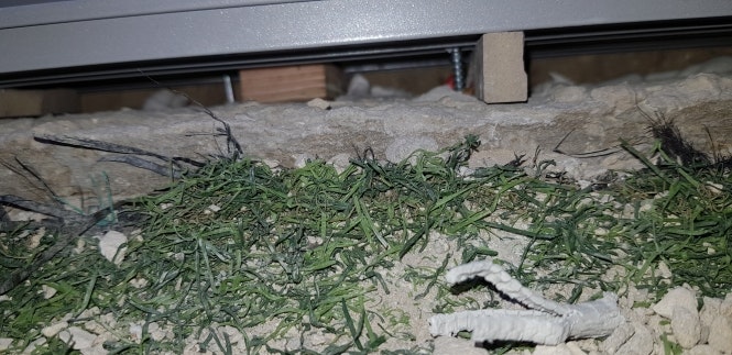 שלום . איש האלומניום הניח מסילות וטרינה על בטון שלא היה ישר ככ . לכן יש מרווח בין המסילות ליציקה . עם איזה חומר ובאיזה דרך ניתן למלא