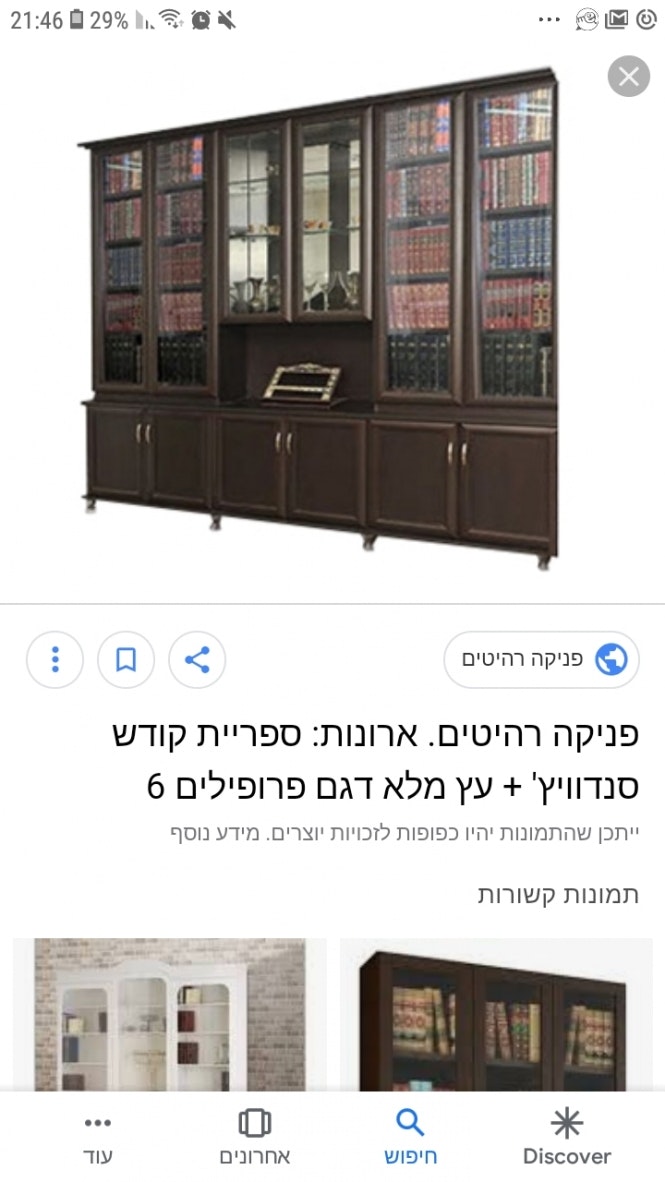 יש לנו ספריית קודש בצבע חום ונגה..הספריה חדשה היתה בשימוש רק 7 חודשים.אני מעוניינת