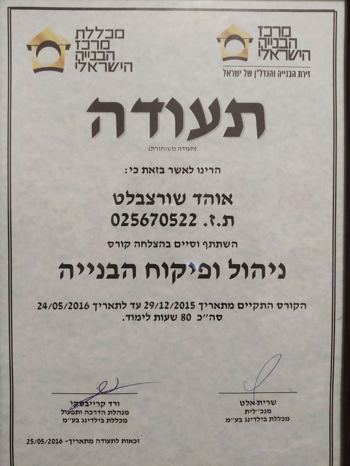 מתמחה בניהול פרויקטים בבניה.
